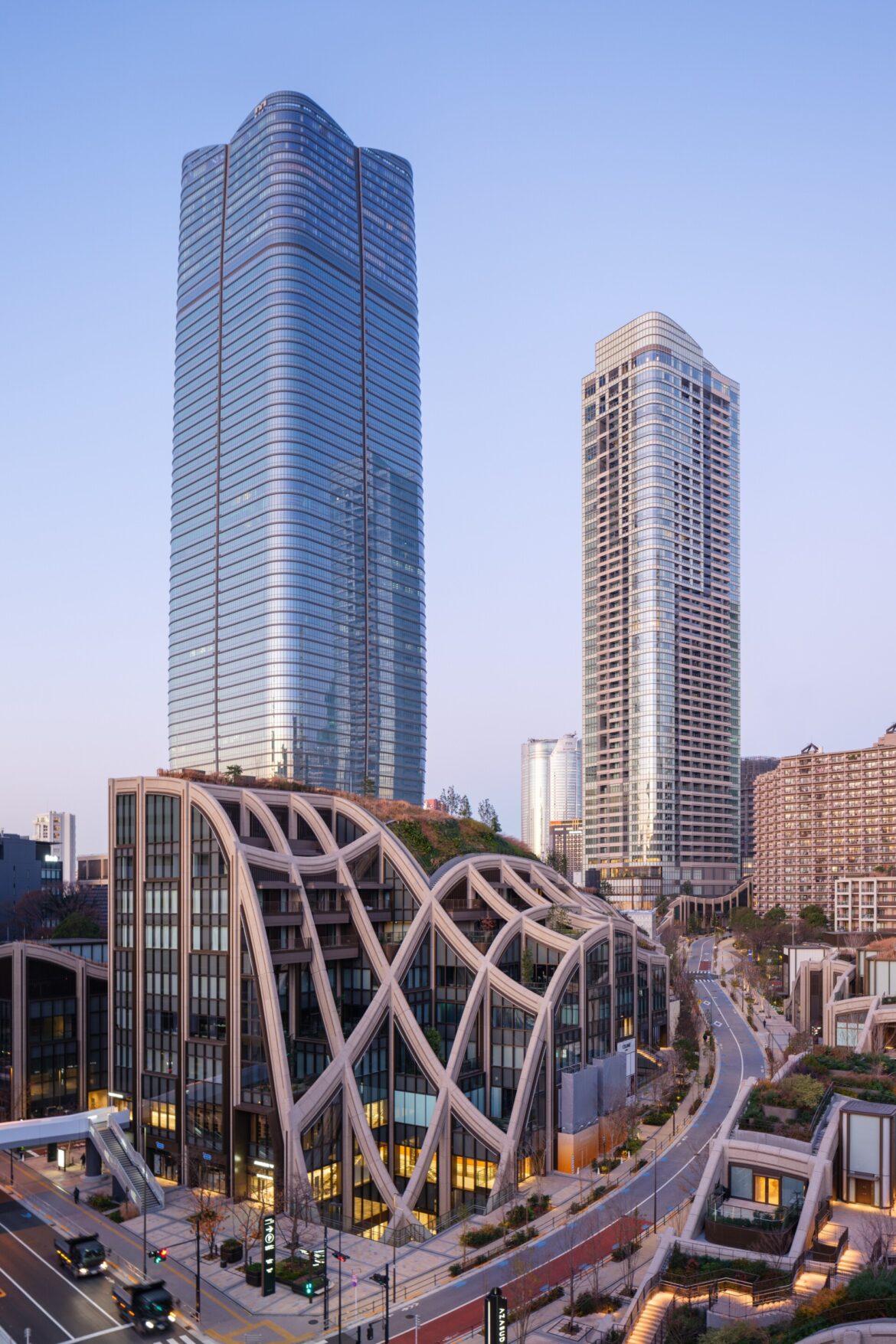 Azabudai Hills là một trong những dự án nổi bật tại Tokyo, với tổng chiều cao lên đến hàng trăm mét. Tòa nhà được thiết kế chịu được động đất mạnh nhờ kết hợp khung thép đàn hồi, hệ thống giảm chấn hiện đại và lớp nền cách ly. Công trình không chỉ là biểu tượng kiến trúc mà còn là minh chứng cho sự an toàn trong các khu đô thị động đất cao.