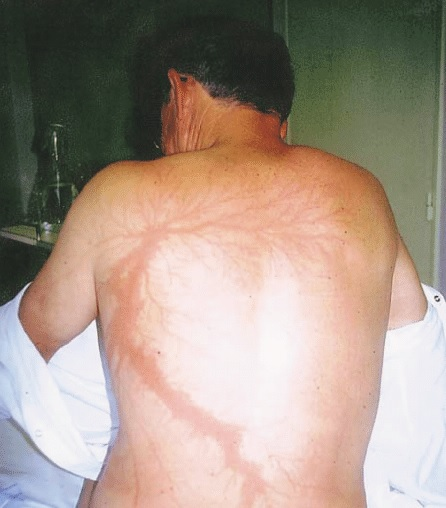 Các vệt đỏ chính là hình ảnh của máu thoát ra từ các mao mạch bị vỡ. Hình dạng phân nhánh của chúng không phải là ngẫu nhiên, mà chính là con đường mà dòng điện đã chọn để lan truyền qua cơ thể nhằm tìm đường thoát ra ngoài nhanh nhất.