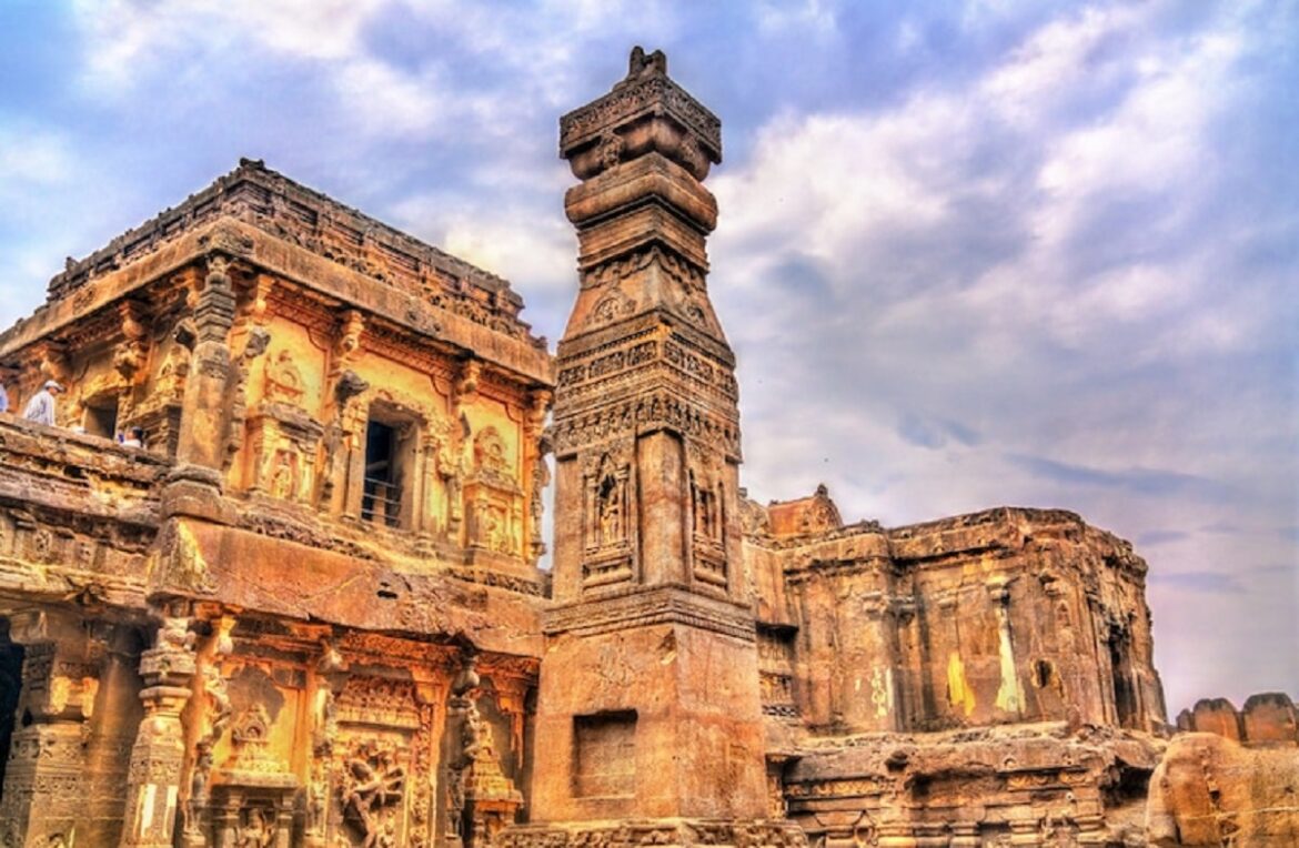 Ellora Caves là quần thể gồm 34 hang động lớn nhỏ, được tạc từ thế kỷ thứ 5 đến thế kỷ thứ 10, bao gồm các hang Hindu, Phật và Jain. Đền Kailasa nằm trong quần thể này là kỳ quan kiến trúc đá chạm khắc với quy mô khổng lồ, được tạc từ một khối đá duy nhất. Mỗi chi tiết từ tượng thần, cột trụ, mái vòm đến bức tường đều được chạm khắc tinh xảo.