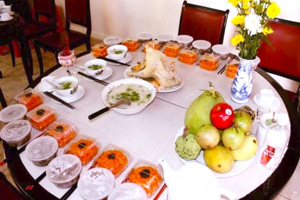 • Xôi, gà luộc, thịt heo quay (tùy phong tục từng vùng).