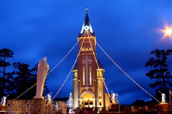 Đêm Noel 24/12, nhà thờ tổ chức thánh lễ trang nghiêm, hòa cùng không gian được trang trí lung linh. Đây là dịp đông vui nhất trong năm, thu hút hàng ngàn người dân và du khách.