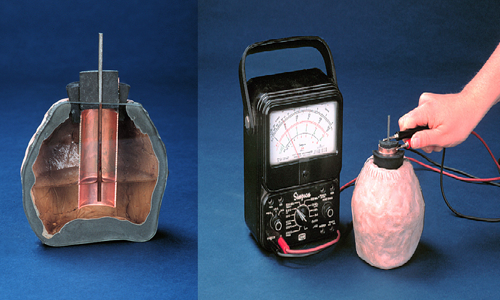 Sự kết hợp này tương tự cấu trúc pin đơn giản ngày nay, tạo ra phản ứng hóa học sinh điện thế nhỏ.