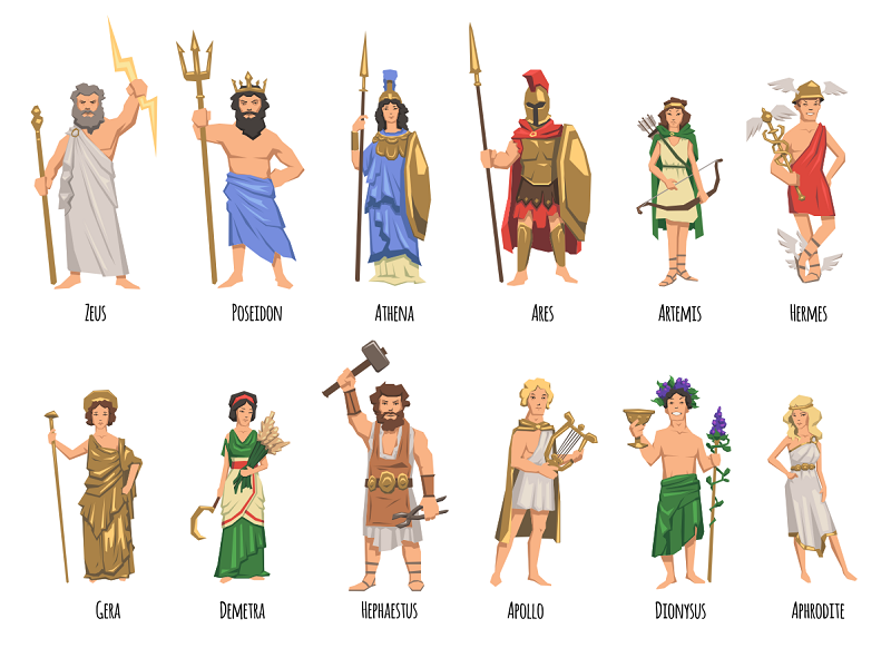 - Poseidon: thần biển cả, quyền lực đối với đại dương, động đất và các sinh vật biển.