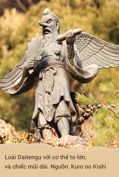 - Daitengu (Tengu lớn): Mũi dài, diện mạo humanoid, sức mạnh phi thường và tinh thông võ thuật. Thường xuất hiện trong những câu chuyện về chiến binh và anh hùng.