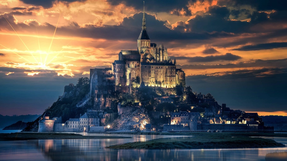 Mont Saint-Michel nằm ở vùng Normandy, Pháp, trên một đảo đá nằm giữa bãi triều rộng lớn. Khi thủy triều lên, đảo trở thành một hòn đảo biệt lập hoàn toàn; khi thủy triều rút, bãi cát hiện ra tạo nên lối đi đầy thử thách nhưng cũng rất kỳ vĩ. Đây là một trong những địa điểm hiếm hoi trên thế giới kết hợp được vẻ đẹp thiên nhiên và kiến trúc tôn giáo tuyệt mỹ.